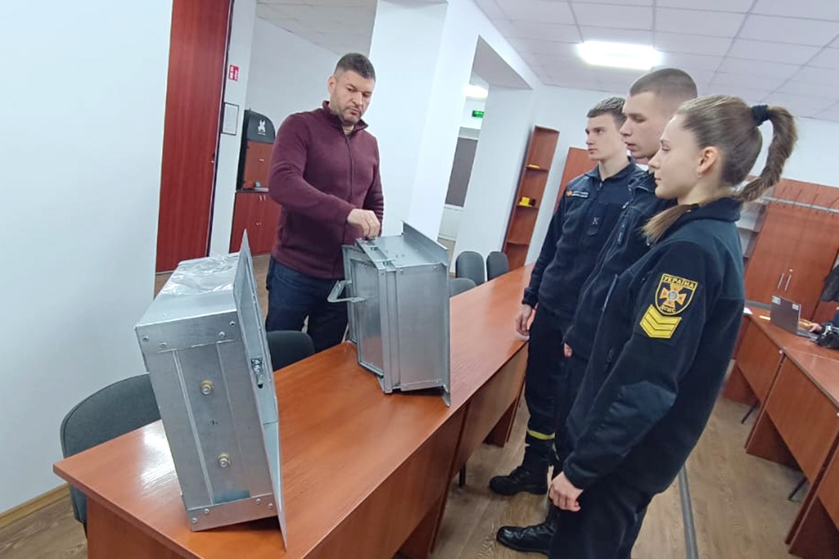 Старший викладач кафедри Олександр Сіпко розповів молоді принцип роботи клапанів димовидалення під час наукового гуртка «Пожежна безпека будівель».