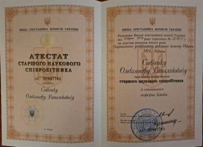 Старший науковий співробітник зі спеціальності 21.06.02 «Пожежна безпека», 2010 рік.